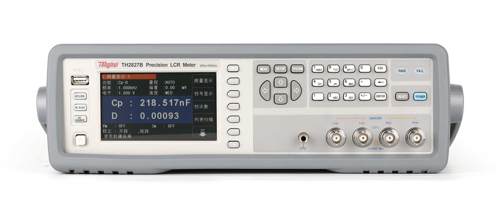 簡介■ TH2827B是具有多種功能和更高測試頻率的新型LCR數字電橋,體積小,緊湊便攜,便于上架使用。本系列儀器基本精度為0.05%,測試頻率最高500kHz及10mHz的分辨率,4.3寸的LCD屏幕配合中英文操作界面,操作方便簡潔。集成了變壓器測試功能,提高了測試效率。儀器提供了豐富的接口,能滿足自動分選測試,數據傳輸和保存的各種要求。應用技術參數顯示器480×RGB×272 4.3寸TFT