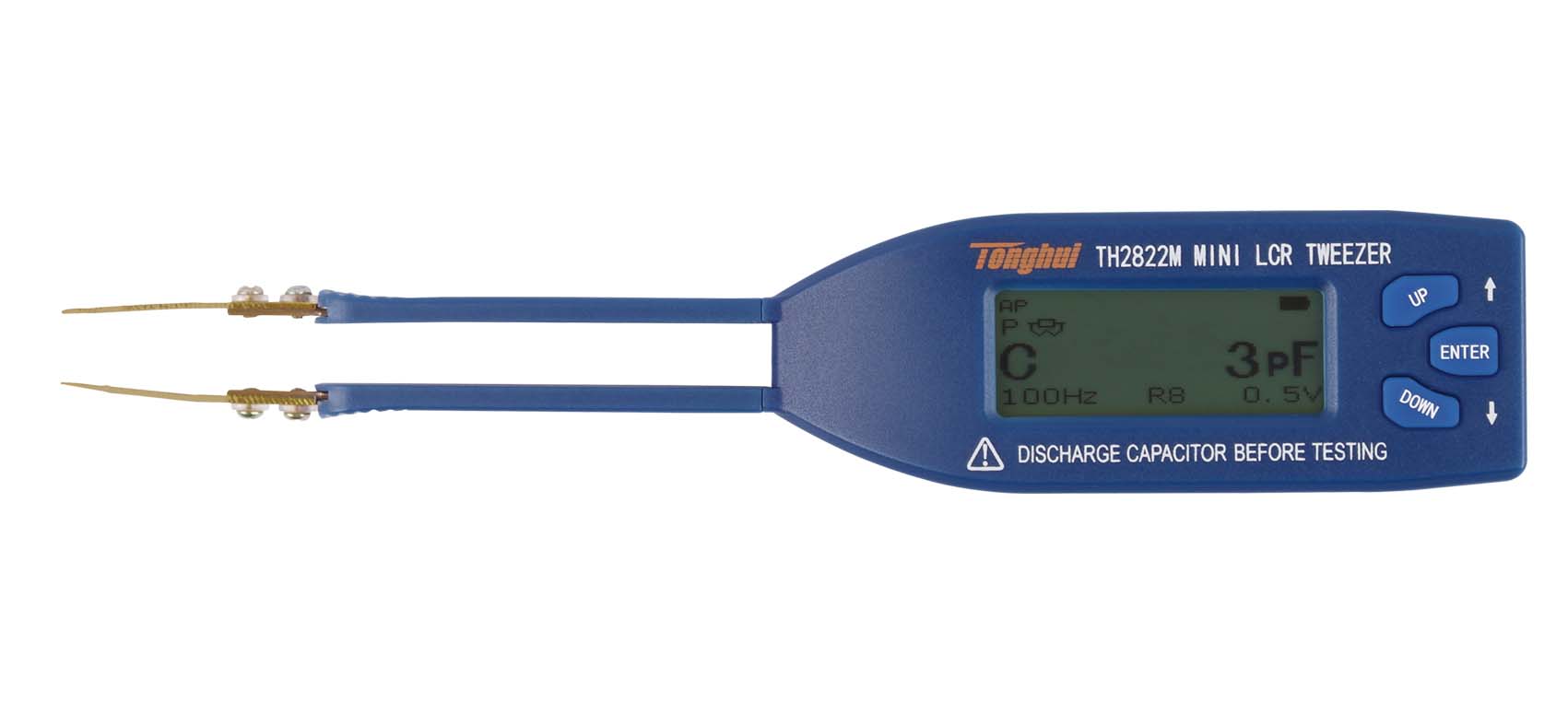 TH2822M迷你LCR表應用■?無源元件的阻抗參數評估?■?印制電路板、繼電器、開關、電池等的阻抗評估?■?主要用于一些封裝小的貼片元件技術參數產品型號TH2822M功能顯示LCD液晶顯示基本測量準確度0.5%測試頻率100Hz,125Hz,1kHz,10kHzAC信號電平0.5 Vrms信號源輸出阻抗100Ω、1kΩ、10kΩDCR測量功能有測試參數主參數:L / C / R / Z / DC