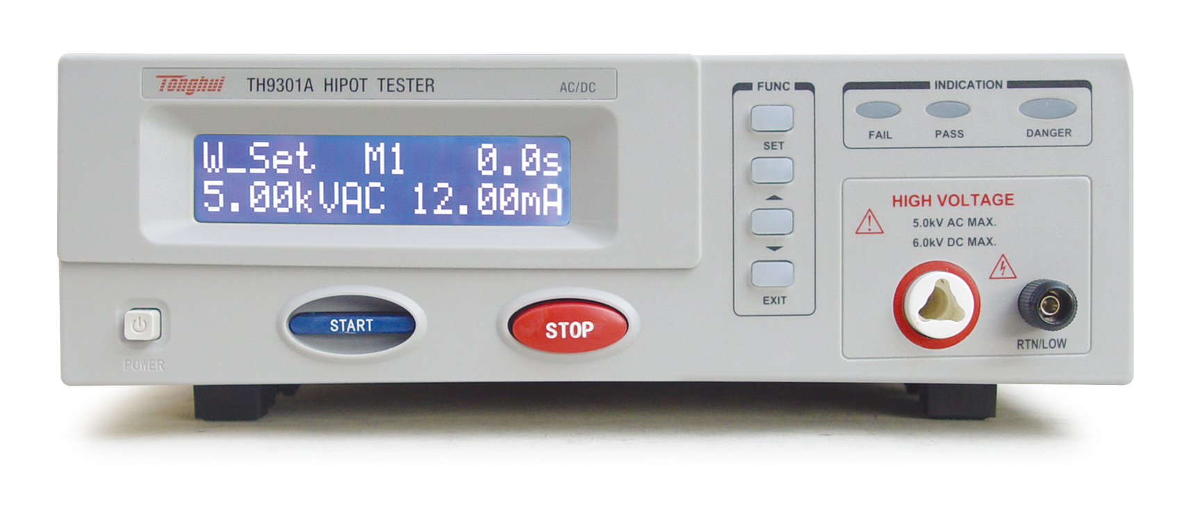 ■?TH9301系列交直流耐壓絕緣測試儀是一款小功率經(jīng)濟型智能安規(guī)測試儀器。體積小、重量輕、外形美觀、操作 簡便。