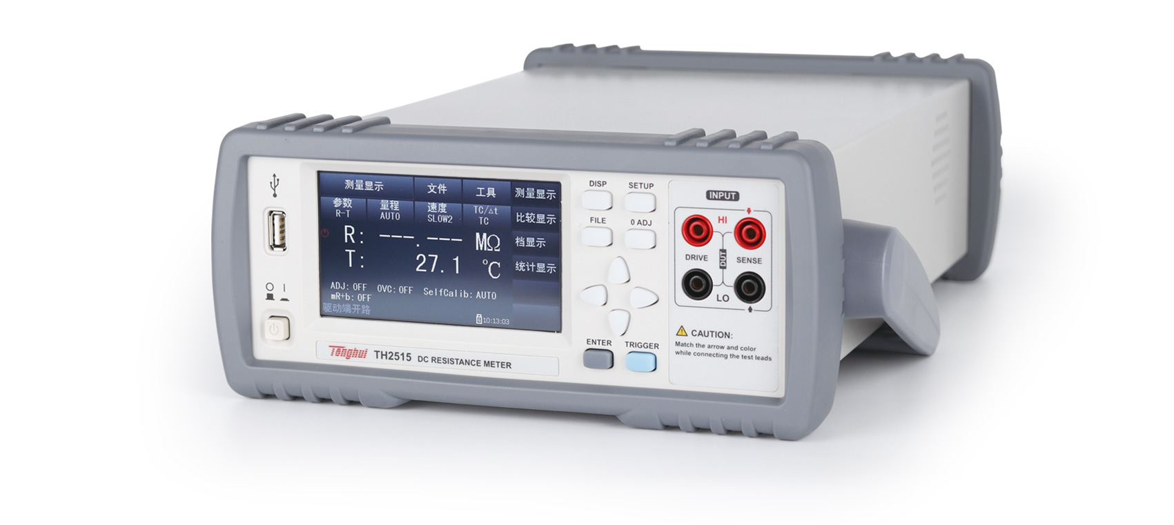 •  同惠電子憑借其在阻抗測試領域深厚的技術積淀和廣泛的市場調研,推出了帶觸摸功能和彩色液晶顯示的直流阻抗測試儀器--TH2515系列直流電阻測試儀。其較高的性能、便捷的操作、精美的外觀足以相較于市場上的前沿產品。TH2515系列直流電阻測試儀采用當前主流的32bits CPU和高密度SMD貼裝工藝,帶觸摸功能的24位色4.3英寸彩色液晶屏,界面清爽、操作便捷;0.01%的最高電阻測量精度及0.1uΩ最小電阻分辨率在國內首屈一指,其適用于繼電器接觸電阻、接插件接插電阻、導線電阻、印制板線路及焊孔電阻等;很好的消除了熱電對被測元件接觸的影響而引起的潛在誤差;溫度補償和溫度轉換功能免除環境溫度對測試工作的影響;失調電壓補償功能能夠有效消除被測件的自身的電動勢以及接觸電勢差;其超高速的測試速度以及通過handler接口可以輸出10檔不同邊界的比較結果信號,便于生產線上的自動化操作。TH2515系列提供了幾乎所有主流的接口功能,可方便的與PC進行數據通訊和遠程控制。