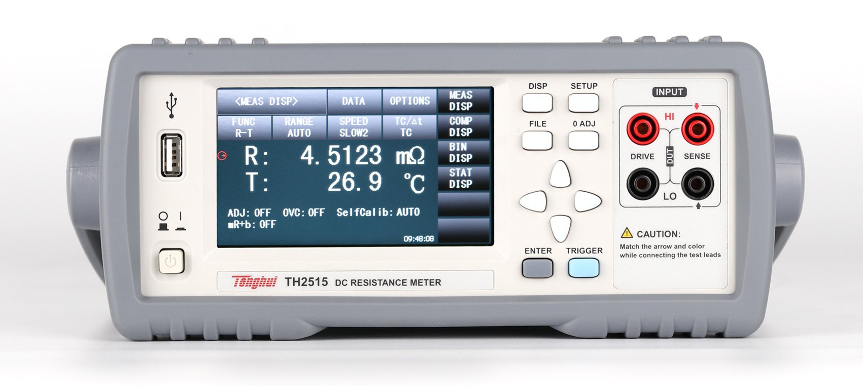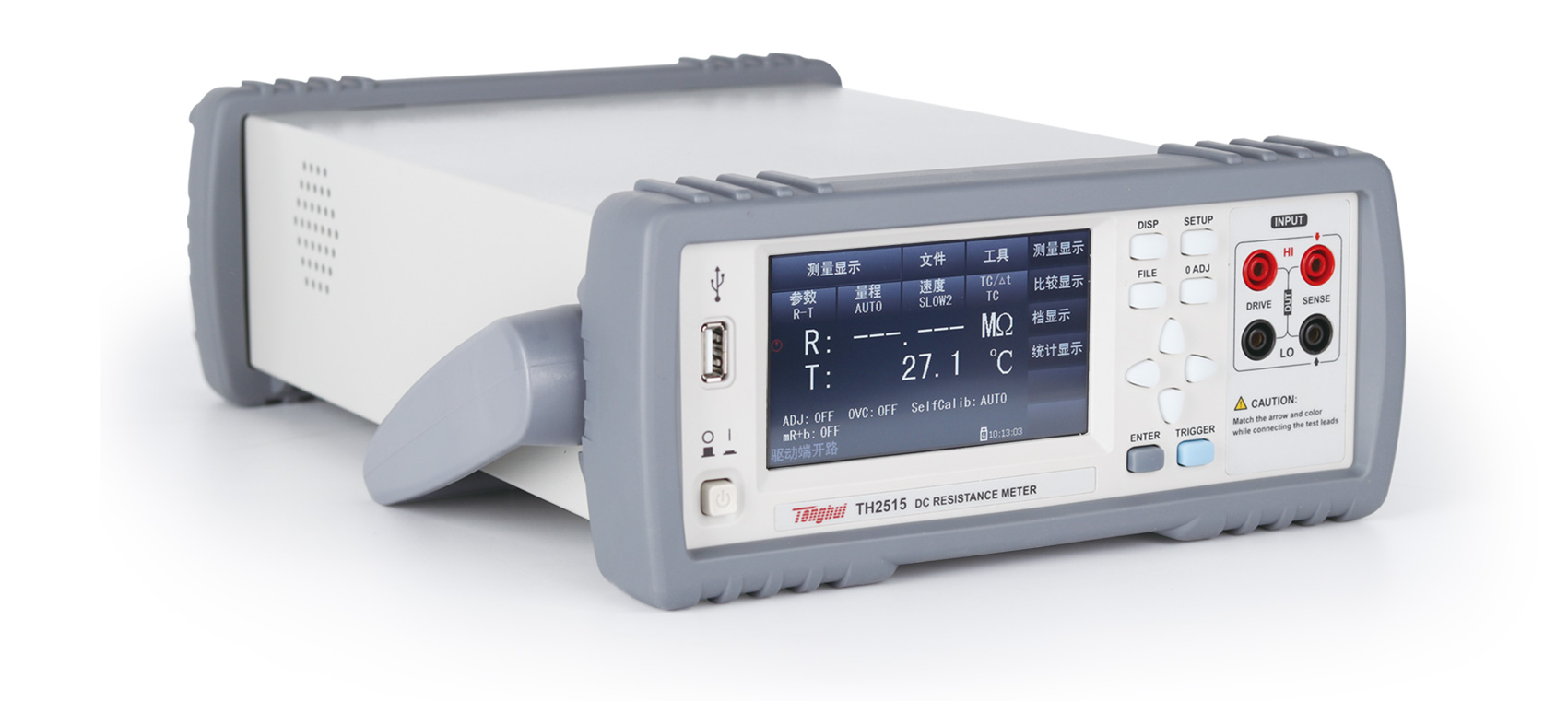 TH2515 直流低電阻測試儀簡介■ 同惠電子憑借其在阻抗測試領域深厚的技術積淀和廣泛的市場調研,推出了帶觸摸功能和彩色液晶顯示的直流阻抗測試儀器--TH2515系列直流電阻測試儀。其較高的性能、便捷的操作、精美的外觀足以相較于市場上的前沿產品。TH2515系列直流電阻測試儀采用當前主流的32bits CPU和高密度SMD貼裝工藝,帶觸摸功能的24位色4.3英寸彩色液晶屏,界面清爽、操作便捷;0.