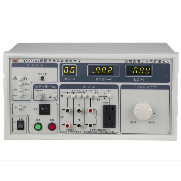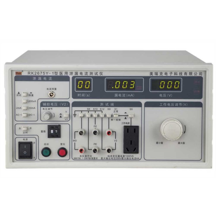 RK2675Y系列醫(yī)用泄漏電流測試儀用于測量醫(yī)用電氣設(shè)備的連續(xù)漏電流和患者輔助電流的檢測試驗設(shè)備。