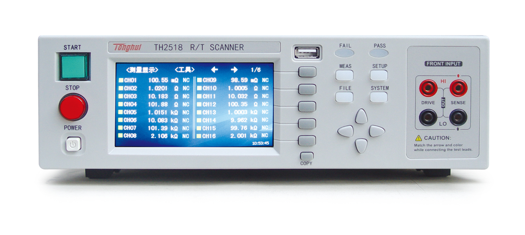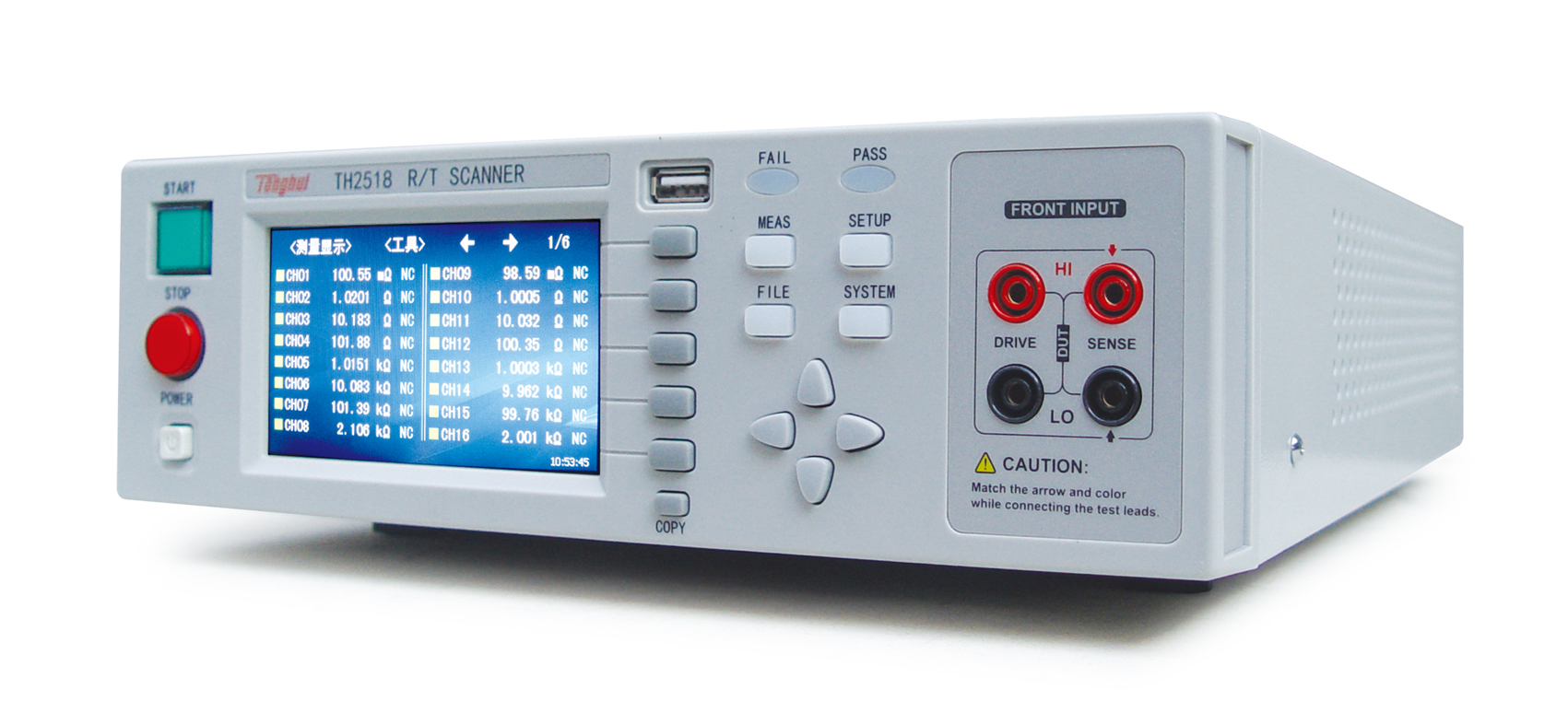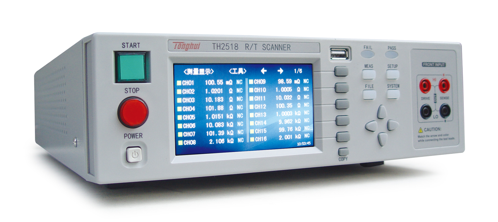 ■ 同惠TH2518系列電阻/溫度掃描儀模擬測試掃描單元采用同步插卡式的設(shè)計理念,可支持的插卡板測試單元可達6個,且在插卡板之間實現(xiàn)同步測量,大大提高掃描測量速度。每塊測量板內(nèi)包含16個測試端,測試端的組合支持用戶可自由編程,最高可配置高達90路電阻/溫度掃描測量通道,每通道測量可單獨設(shè)計分選比較邊界以及輸出比較分選信號。溫度測量的采樣方式可配置為PT500鉑電阻、PT100鉑電阻、模擬電壓輸入三種方式以適用不同的應(yīng)用場合。0.05%的最高電阻精度,在200mΩ量程下,電阻分辨率更是達到了10uΩ的水準,測試掃描范圍從10uΩ到200kΩ。儀器的溫度補償和溫度轉(zhuǎn)換功能使產(chǎn)品的測試免除環(huán)境溫度的影響,可輸出整機級、板級以及各通道的比較分選結(jié)果,使您的測試和數(shù)據(jù)分析處理、產(chǎn)品的分揀工作更加輕松。標配的RS232、USB HOST、USB Device和HANDLER接口既方便您測量數(shù)據(jù)的快速保存,又方便您遠程的掌控儀器。帶觸摸功能的24位色、分辨率為480×272的彩色液晶屏,給您的測量操作帶來不一樣的感覺!