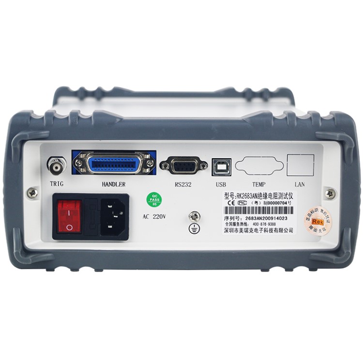 RK2683AN/BN系列絕緣電阻測(cè)試儀是能夠快速測(cè)量電子元器件、介質(zhì)材料、設(shè)備和電線(xiàn)電纜等絕緣性能的測(cè)試儀器,它具備絕緣電阻漏電流雙測(cè)試顯示功能。RK2683AN/BN易于流水線(xiàn)聯(lián)機(jī)操作,配有通信接口可實(shí)現(xiàn)計(jì)算機(jī)儀器全部功能的異地操作。儀器具有超強(qiáng)的抗擾能力,測(cè)試結(jié)果穩(wěn)定可靠。
